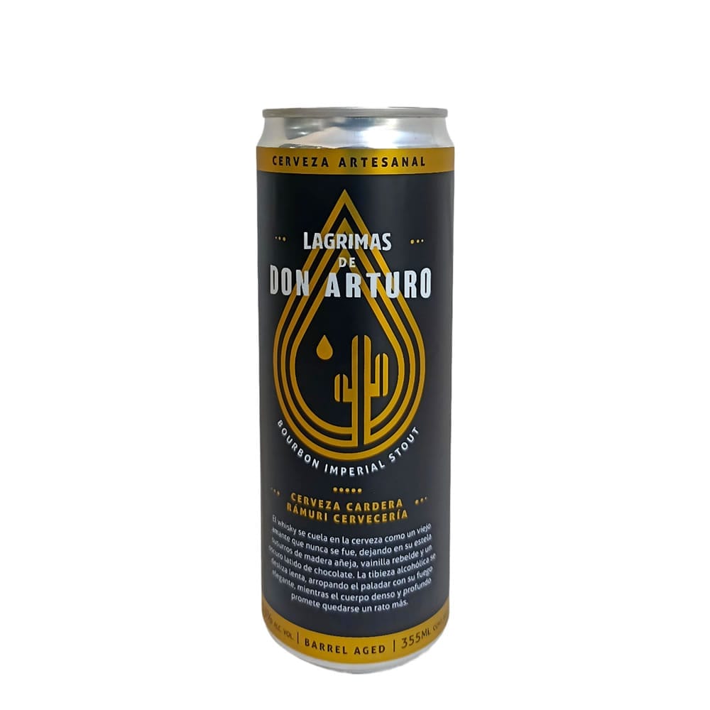 Rámuri Lágrimas de Don Arturo es una cerveza artesanal estilo Bourbon Imperial Stout, elaborada por Rámuri Cervecería. Con 11% de alcohol y añejamiento en barricas de bourbon, ofrece un perfil profundo y seductor: aromas a madera, vainilla, café y cacao se entrelazan con un cuerpo denso y cálido. Es una etiqueta que va más allá del gusto, invitando a saborear lentamente cada capa de sabor. Ideal como digestivo o para cerrar una cena especial. Una cerveza que no se olvida.